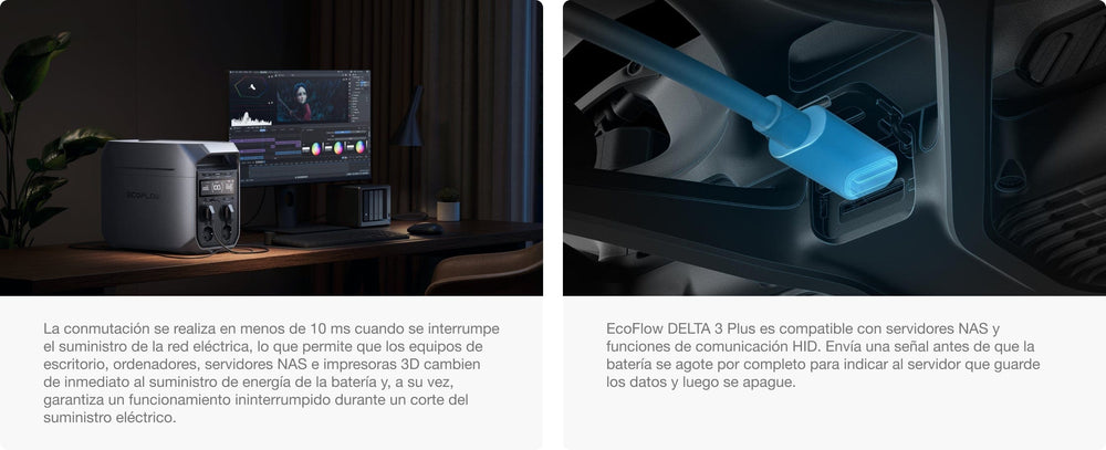 * Descarga la aplicación EcoFlow PowerManager (disponible el 13/9) para activar la función de soporte NAS en tu PC. A continuación, instala el software NUT Server (Linux/x86 disponible el 30/9; Windows/Mac disponible el 31/10) en tu sistema NAS, conecta tu DELTA 3 Plus y activa el soporte HID.