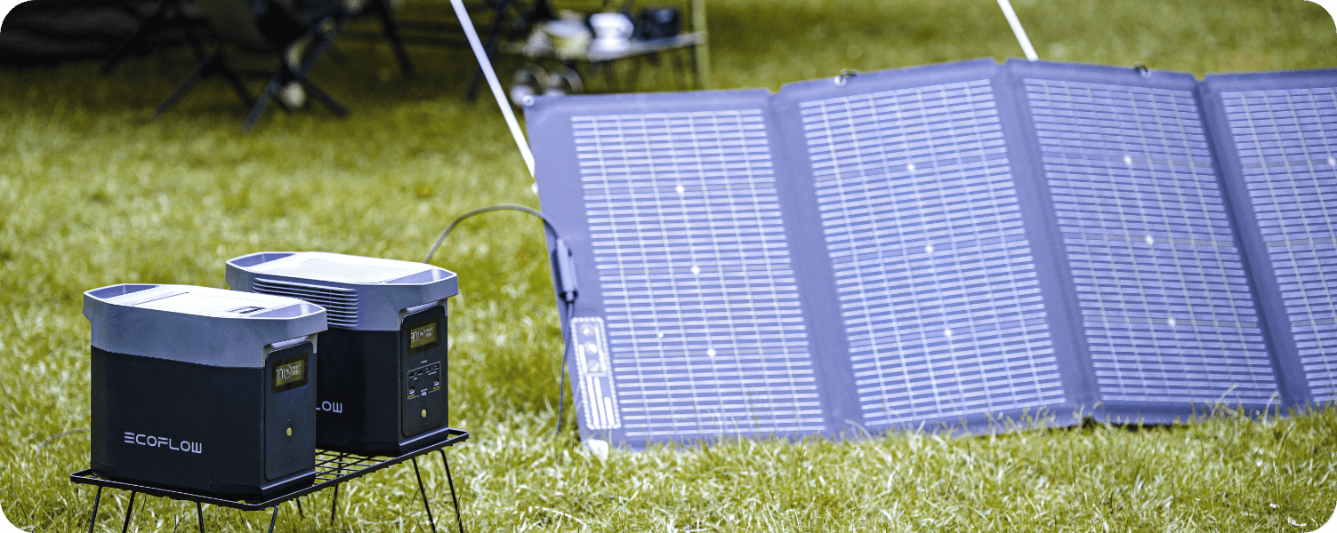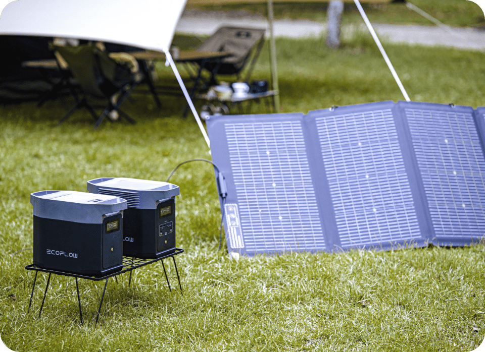 DELTA 2 y su batería adicional se cargan y descargan al mismo tiempo. La recarga desde paneles solares portátiles, tomas de CA o nuestro Generador Inteligente es muy sencilla.