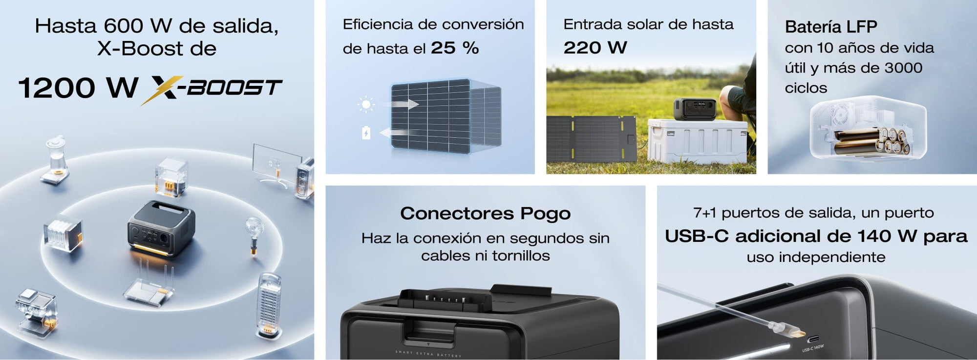 3 tomas de corriente, 600 W en total (máximo de 1200 W, X-Boost de 1200 W)