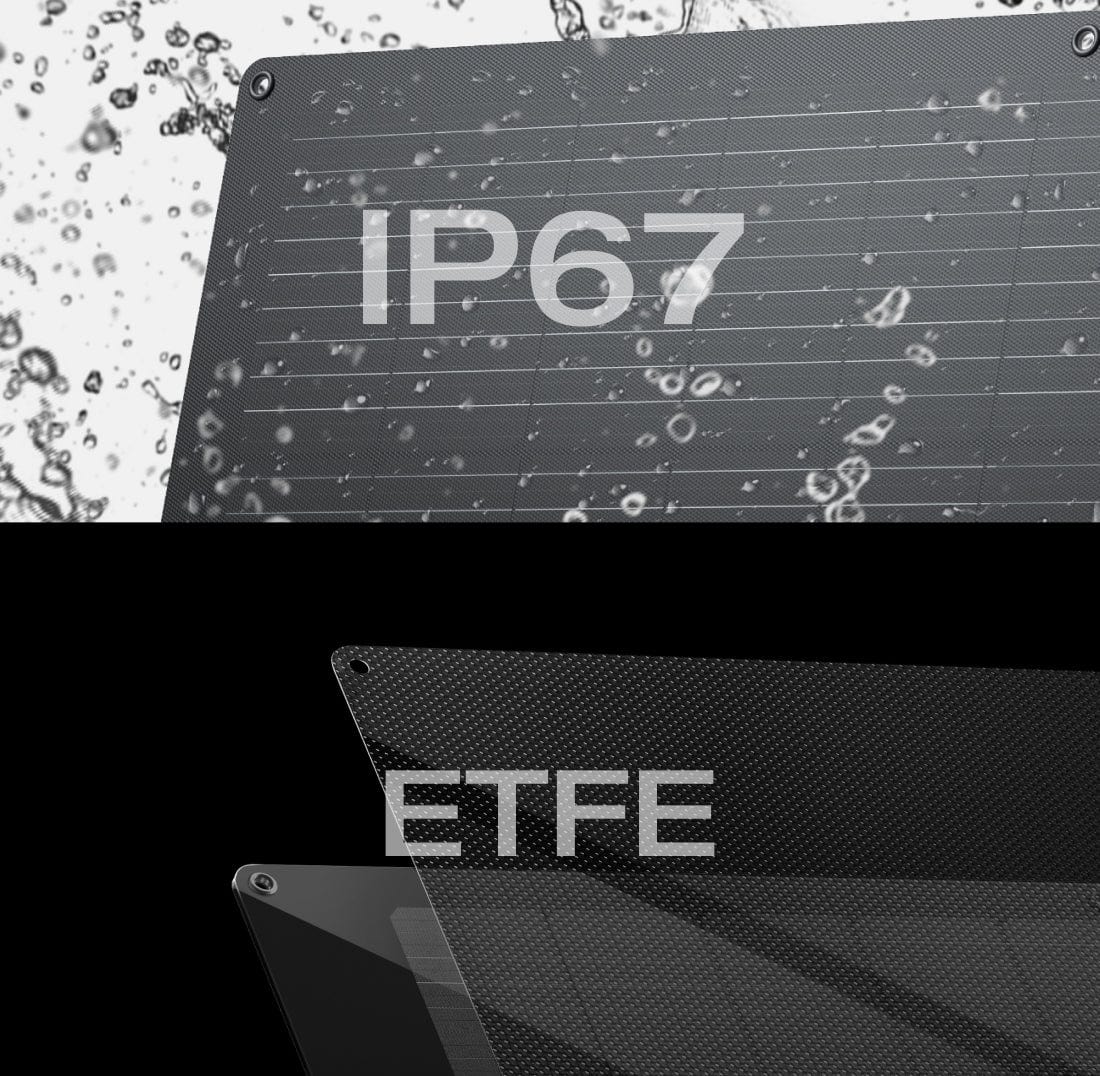Gracias a una película protectora de ETFE, las celdas solares del panel pueden resistir diversas condiciones climáticas, a la vez que protegen el panel y mejoran su rendimiento. Úsalo todo el año en tu balcón y despreocúpate de él.