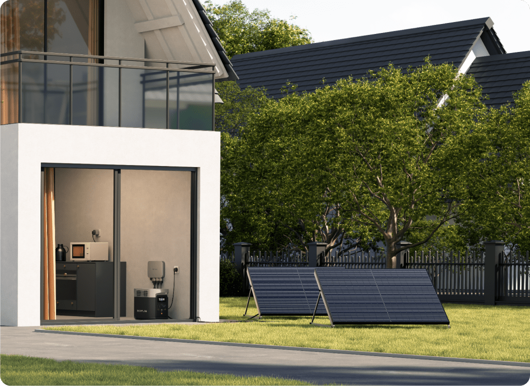 Kit solar para balcones EcoFlow PowerStream con una estación de energía portátil que te permite utilizar la energía solar de día y de noche y reducir tus facturas de la luz. EcoFlow Smart Plug y la aplicación EcoFlow permiten controlar y optimizar el uso de la energía en tiempo real.