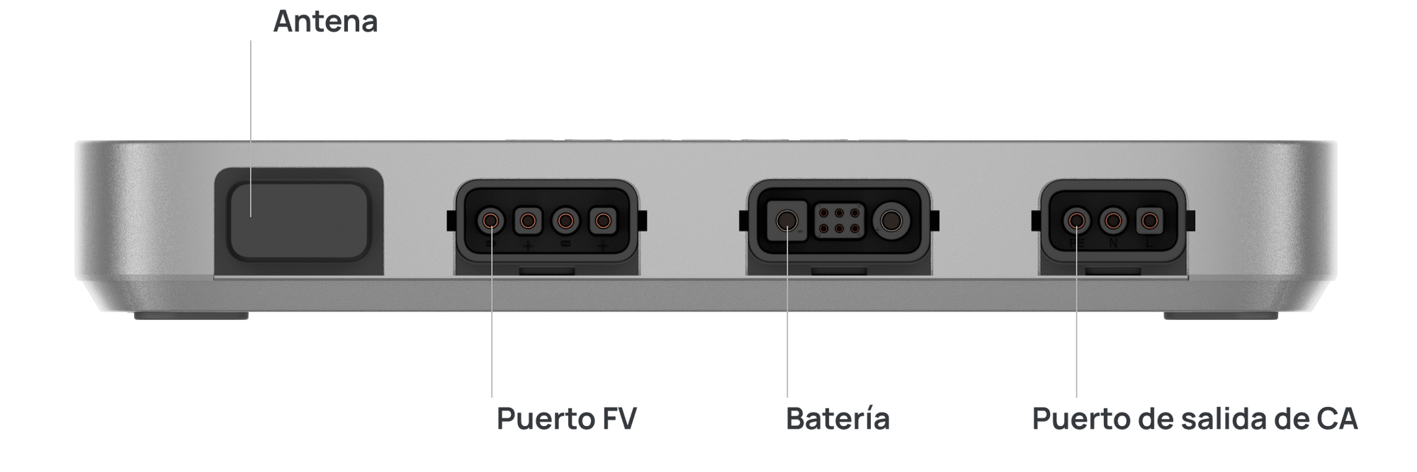 Luz roja encendida constantemente: "falla interna".Luz amarilla encendida constantemente: "falla externa".Luz púrpura parpadeante: "actualización en curso".Luz azul parpadeante: "conexión en red".Luz verde respirando: indica que "la salida de CA del microinversor está conectada al Smart Plug".Luz verde encendida constantemente: indica que "la salida de CA del microinversor no está conectada al Smart Plug".Luz blanca respirando: indica que "el microinversor no tiene salida de CA, pero está cargando la batería".Luz blanca encendida constantemente: "encendido, sin salida de CA y sin carga de batería".
