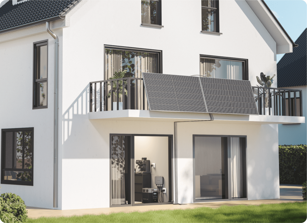 El sistema almacena el excedente de energía en una estación de energía durante el día para que puedas tener energía de reserva cuando la necesites. Con una alimentación eléctrica para el hogar de hasta 1039 kWh al año, puedes ahorrar un máximo de 415 €. [1]