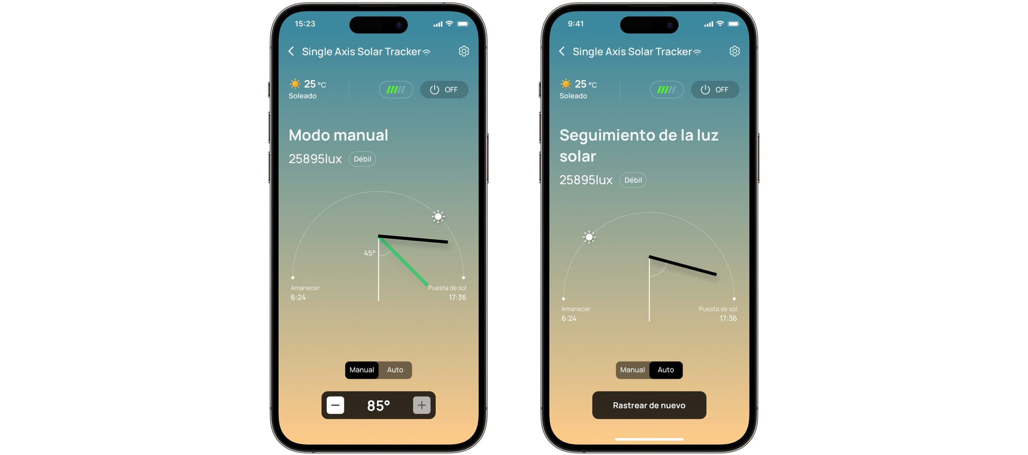 Se enciende automáticamente y funciona durante todo el día, y se apaga cuando se pone el sol o cuando no puede recibir la luz solar. Puedes monitorizar fácilmente el estado del funcionamiento del seguidor solar a través de App EcoFlow. En circunstancias específicas, puedes ajustar el ángulo del rastreador manualmente. Es altamente eficiente, inteligente y seguro de usar.