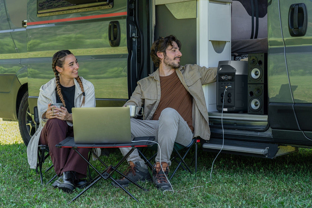 Escapa de la red y disfruta de la naturaleza sin preocuparte de cuánta energía has consumido. Con la friolera de 3,6-7,2 kWh de potencia ampliable, experimente la máxima libertad de la vida fuera de la red mientras alimenta todo lo esencial de tu vehículo recreativo con una fuente de energía limpia y silenciosa. Además, utiliza DELTA Pro como cargador móvil para vehículos eléctricos cuando estés de viaje. DELTA Pro es la solución de energía portátil definitiva para viajes en autocaravana y aventuras al aire libre.
