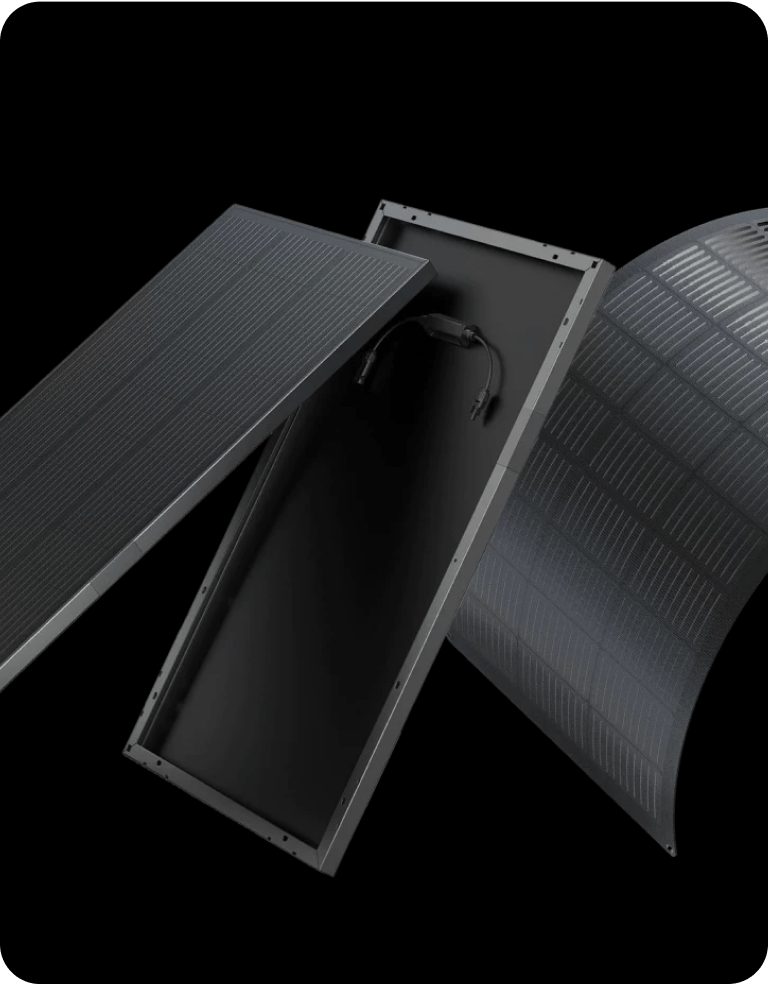 EcoFlow ofrece una gama excepcional de tipos de paneles solares, desde paneles solares portátiles y plegables con soportes incorporados hasta paneles solares flexibles, ligeros y fáciles de instalar, y paneles solares rígidos y robustos. Además, con potencias de 60 a 400 W, cubrimos todas tus necesidades de energía. Conéctalos en paralelo y en serie para aprovechar al máximo tus paneles.