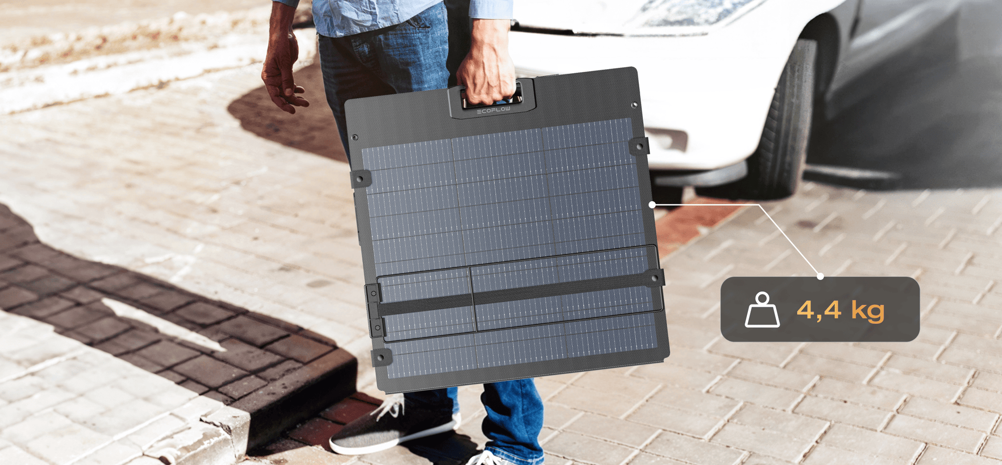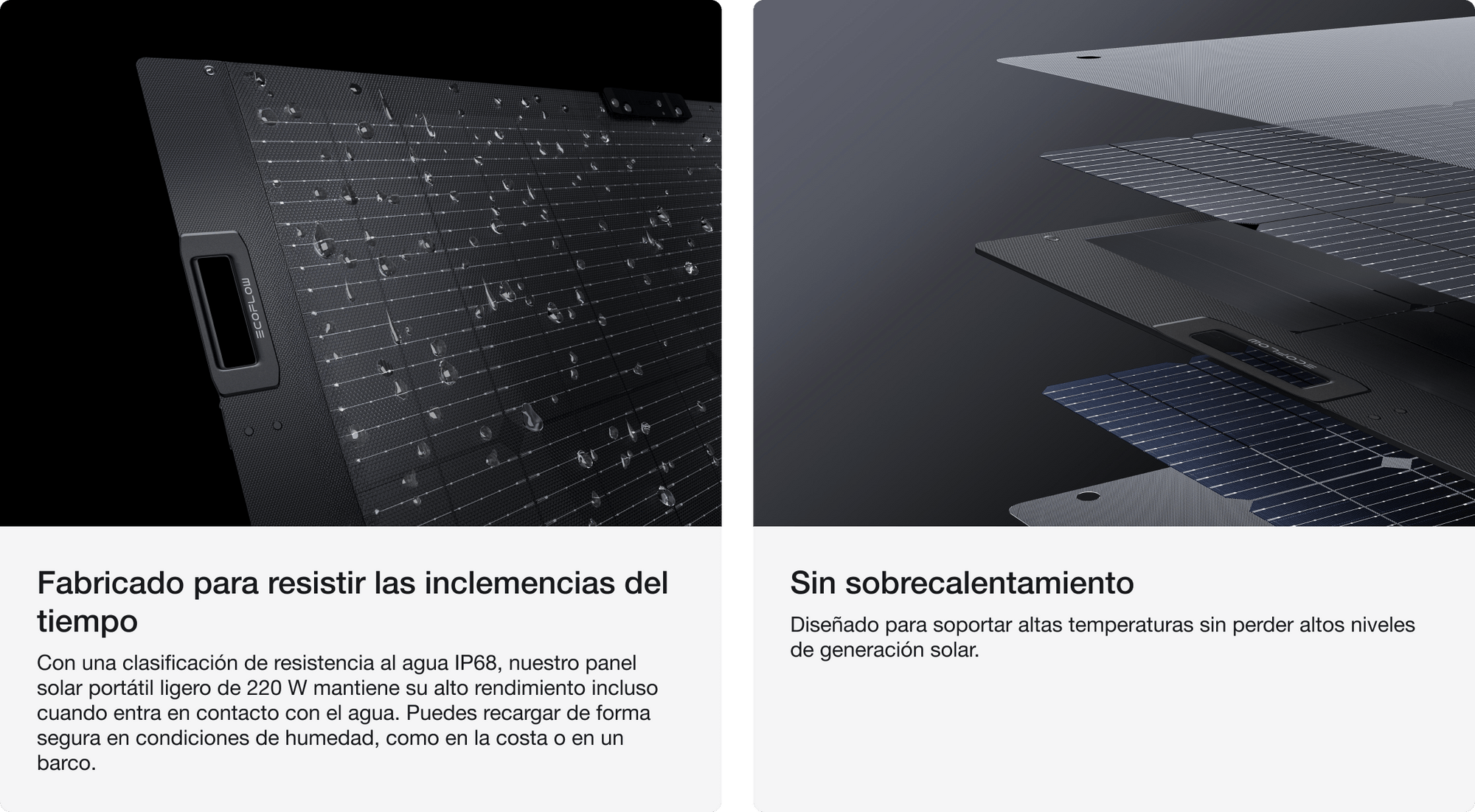 Fabricado con materiales ligeros de última generación, este panel solar portátil, que pesa 4,4 kg, es un 46 % más ligero que el panel solar portátil bifacial de 220 W, lo que permite un transporte sin esfuerzo y un almacenamiento compacto.