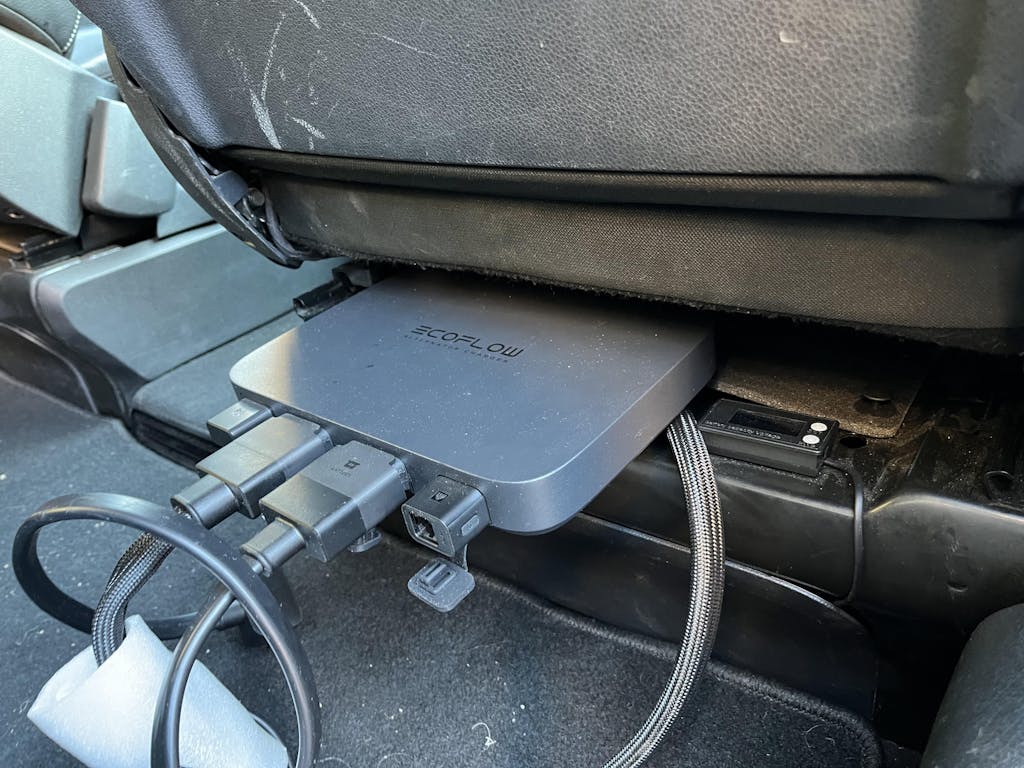 Con el cargador mediante alternador EcoFlow de 800 W podrás cargar 8 veces más rápido que con las tomas tradicionales de corriente auxiliares para vehículos simplemente usando el exceso de energía generado por tu vehículo. El cargador utiliza un convertidor CC-CC integrado para restaurar la energía de tu estación de energía EcoFlow mientras conduces.