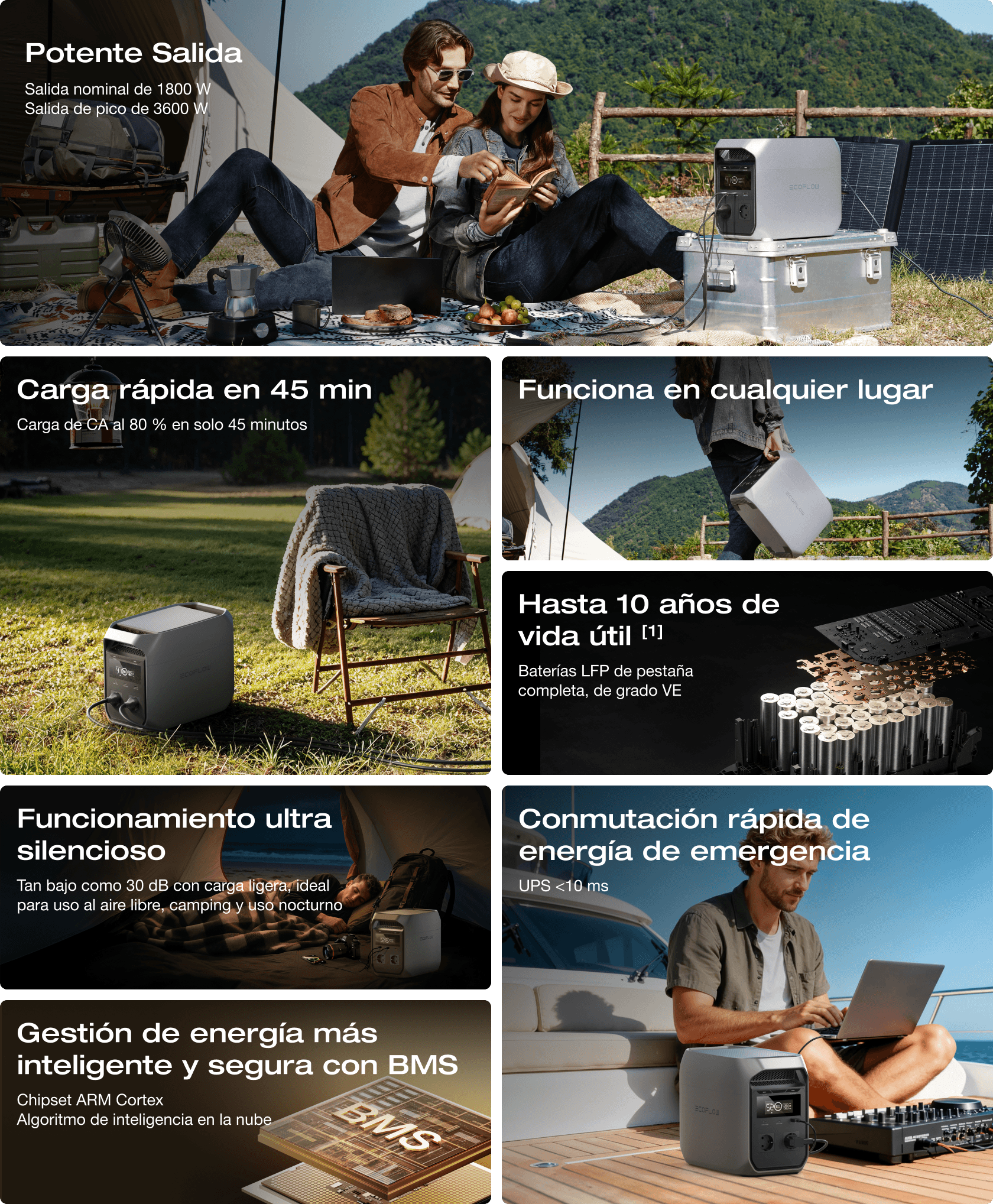 Desde la química de la batería hasta el diseño estructural, DELTA 3 Classic (1024 Wh) está diseñada para una durabilidad extrema, resiliencia ambiental y un rendimiento silencioso, brindando así energía en la que puede confiar durante más de 10 años. [1]