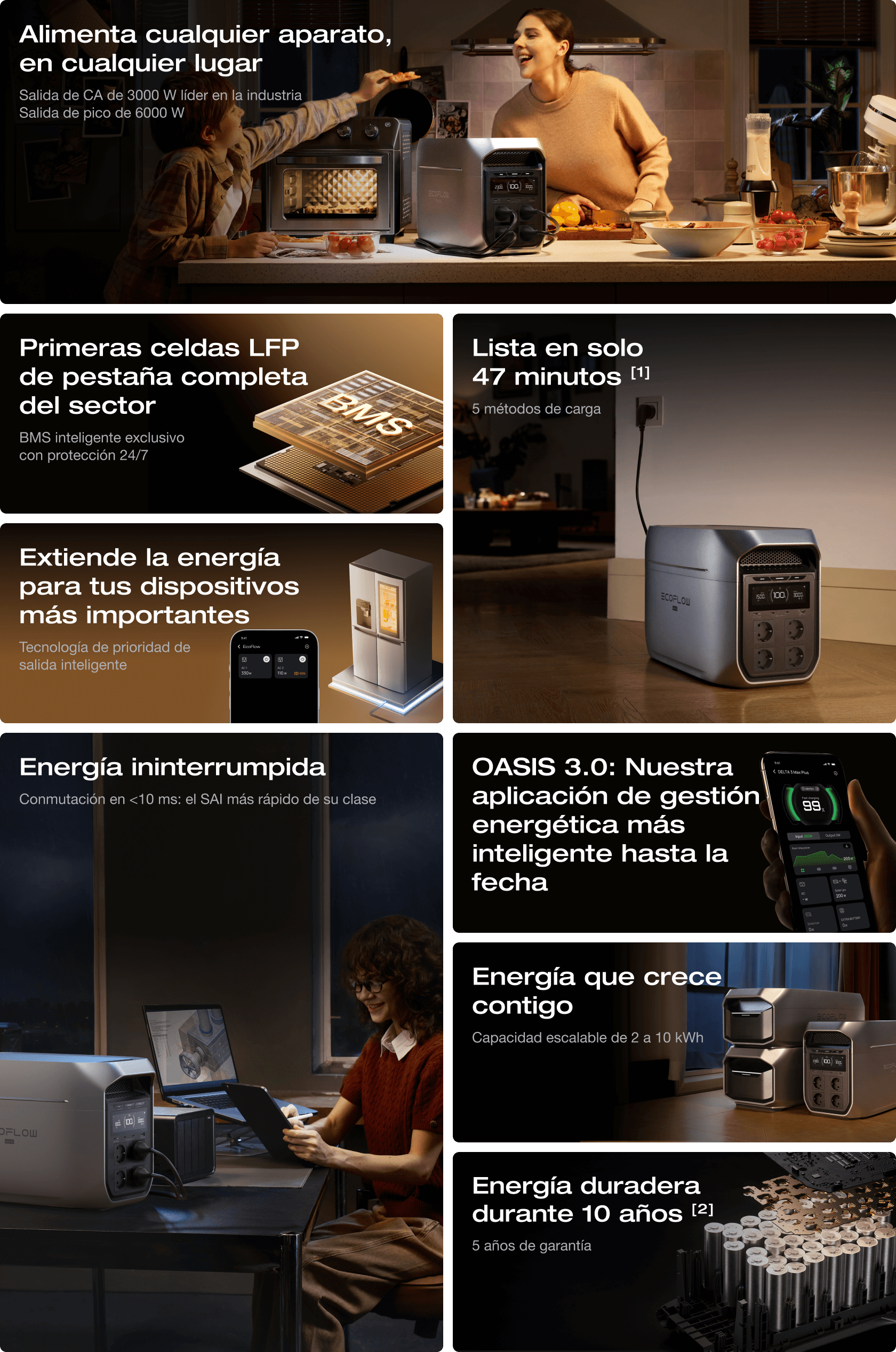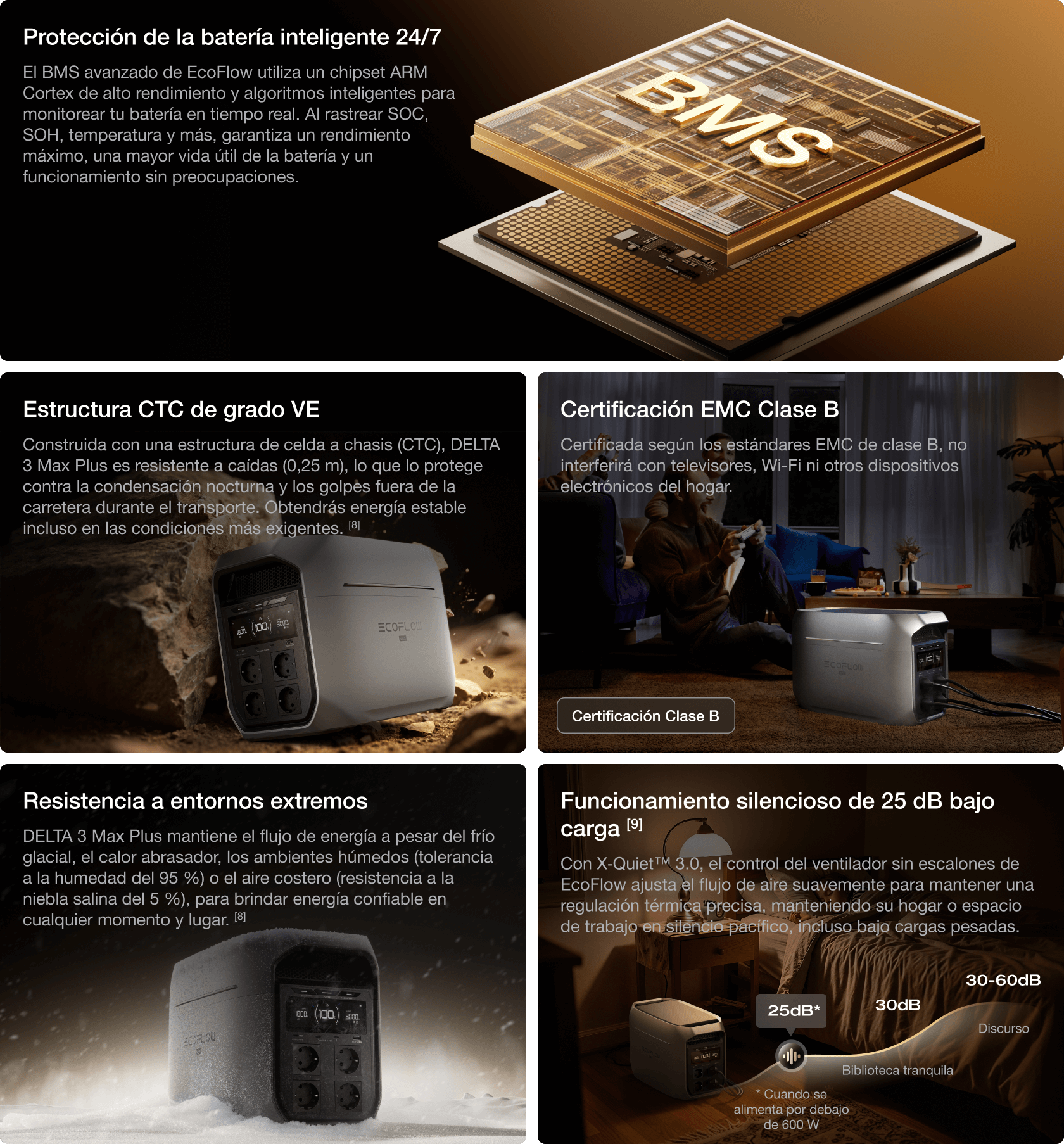 Desde la química de la batería hasta el diseño estructural, DELTA 3 Max Plus está diseñada para una durabilidad extrema, resiliencia ambiental y un rendimiento silencioso, brindando energía en la que puedes confiar durante más de 10 años. [2]