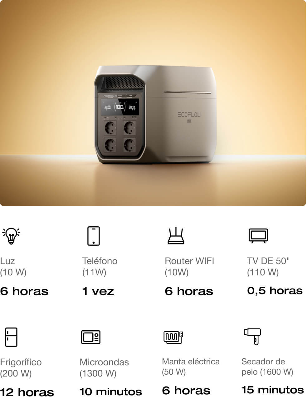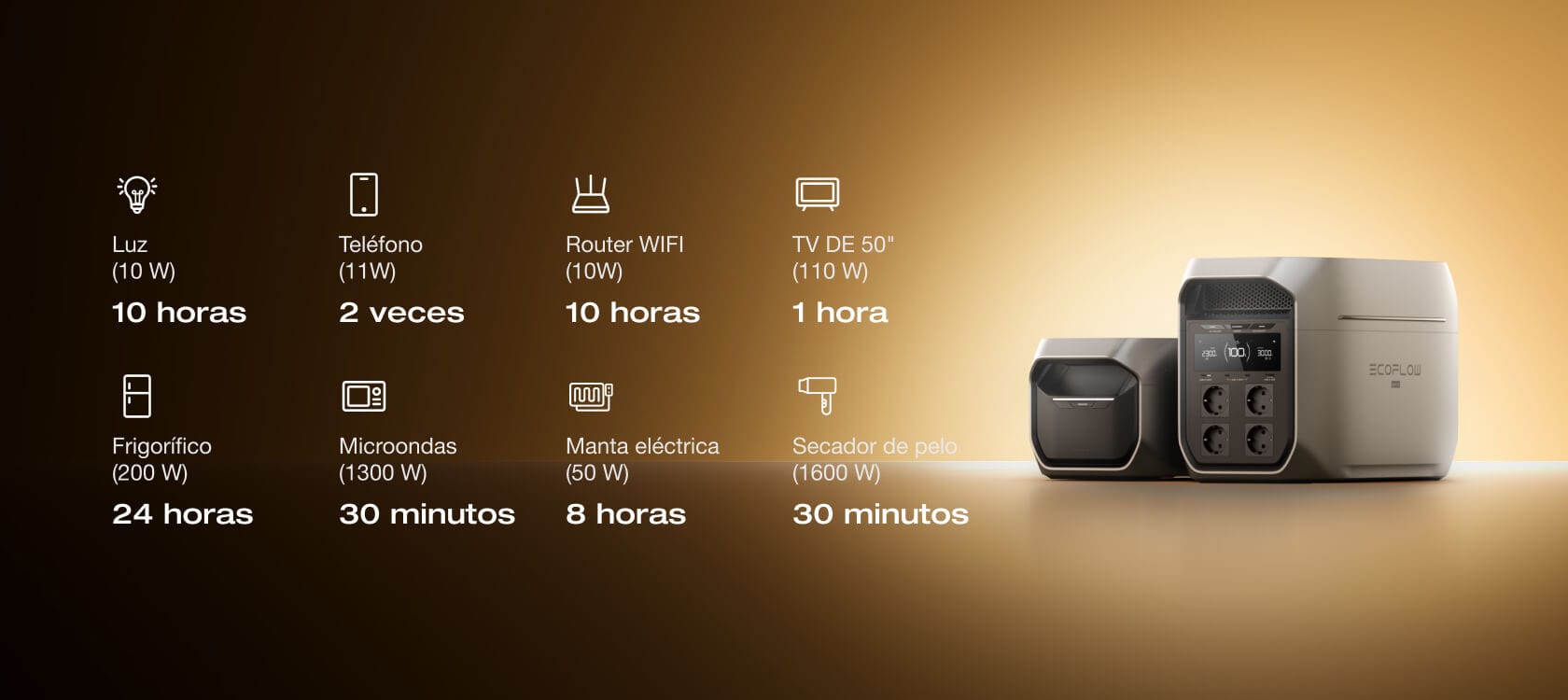 25 % más de potencia [3]: Salida de 3000 W, capacidad de 2 kWh
