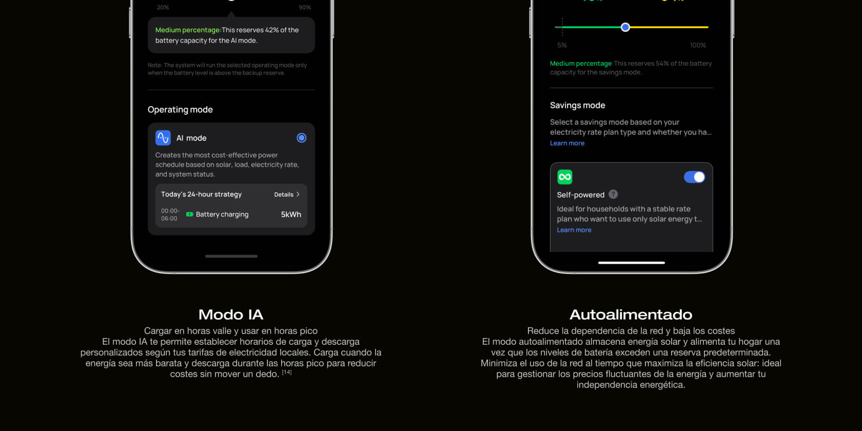 Reserva de energía inteligente | Establece el umbral de batería deseado (%) para eliminar automáticamente las cargas no esenciales durante los cortes de energía