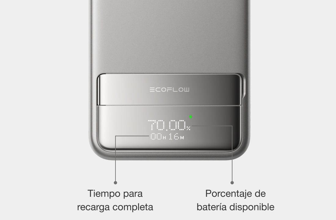 Experimenta el máximo control con la pantalla dinámica de nuestro power bank. El control que proporciona la aplicación inteligente te permite ver el estado de la batería, la velocidad de carga y la potencia de salida, además de añadir un toque personal personalizando tu pantalla mediante la app de EcoFlow.